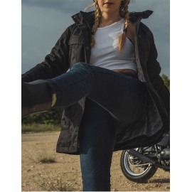 Cuentan con una gran área de refuerzos de Kevlar en todas las zonas de arrastre y posibilidad de añadir protecciones homologadas de máximo nivel en caderas y rodillas para conducir aún más seguro. Sus fuelles elásticos situados por encima de las rodillas aseguran una total libertad de movimiento de las piernas, así como los situados en la zona lumbar que repercuten en una experiencia de confort sin igual, tanto encima como fuera de la moto.